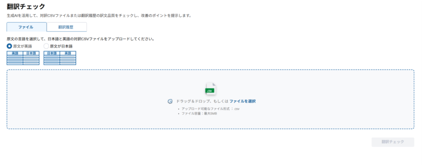 1. チェック対象を対訳CSV、または翻訳履歴から指定します。