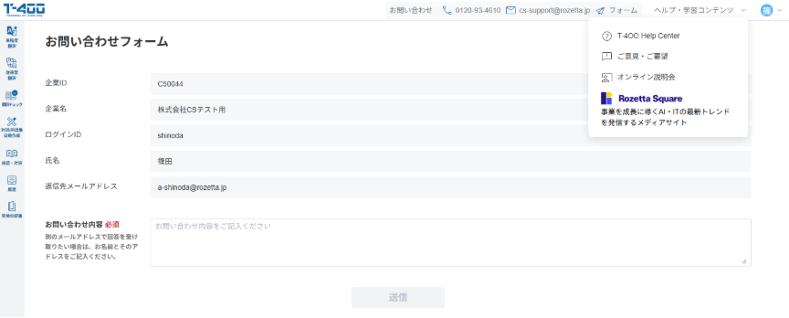 また、上部(ヘッダー部分)に、お問い合わせやヘルプメニューを配置しました。
